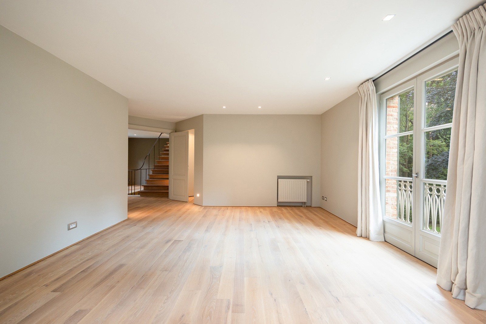 U komt binnen via een prachtige inkomhal van 22m² op natuursteen, voorzien van ingebouwde vestiairekasten en een gastentoilet met handenwasser. De bureauruimte van 18m² op parket is ideaal als thuiswerkplek. De woonkamer van 77m² op parket heeft een authentieke open haard in Franse zandsteen en sluit naadloos aan op de eetkamer van maar liefst 28m². De ruime keuken van 34m² is afgewerkt met marmeren werkblad, kookeiland en handgeschilderde panelen, en is uitgerust met toestellen van Gaggenau, Liebherr en Miele.