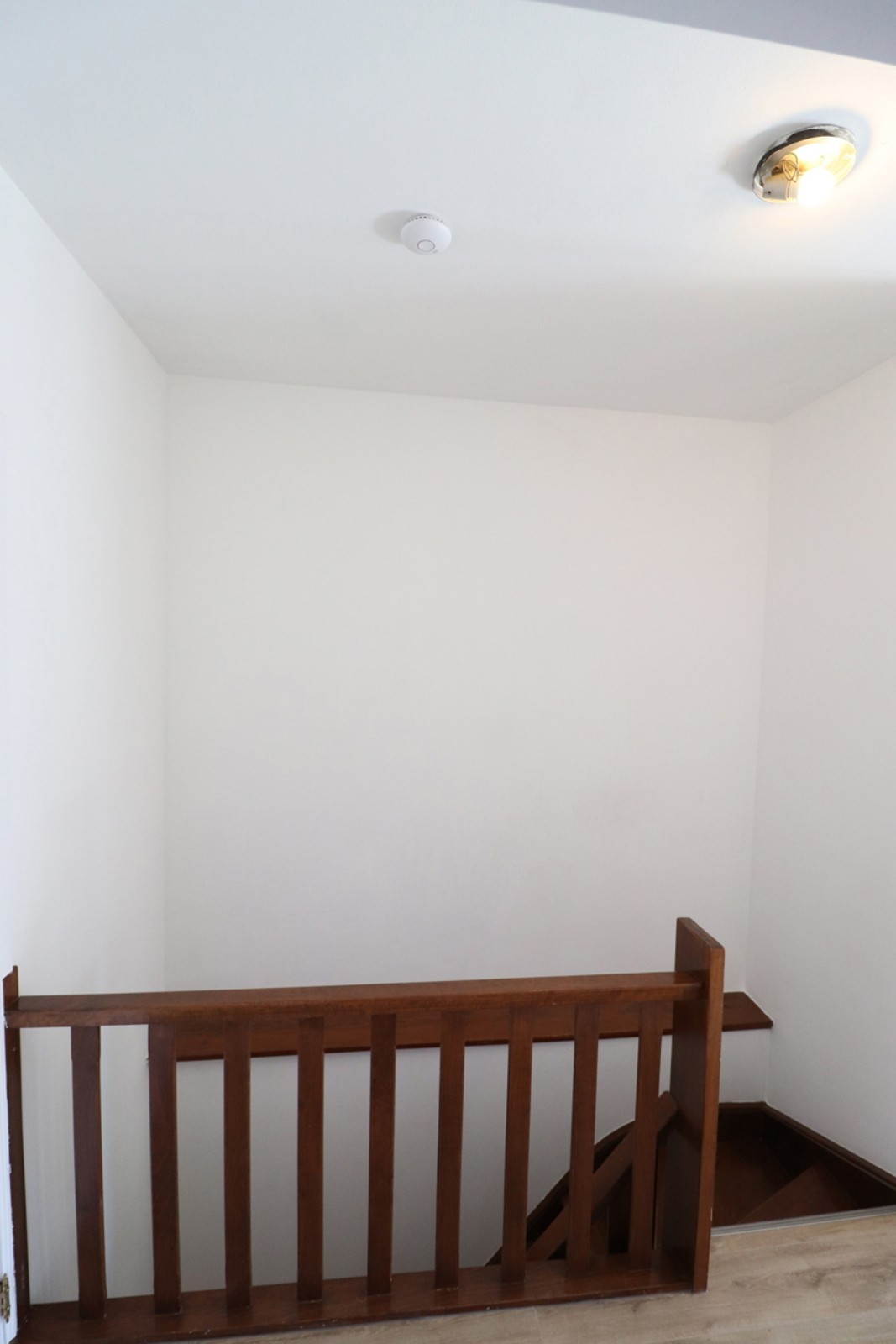Benedenverdieping: inkomhal met trap naar de eerste verdieping. - eerste verdieping: overloop met beukenhouten trap naar de tweede verdieping, toiletruimte met handwastafeltje, woonkamer, keuken met witte formica aanbouwkeuken spoeltafel met 1 bak, afzuigkap en aardgasfornuis, berging - wasplaats met plaats voor de wasmachine, aardgasketel van de centrale verwarming en warmwatertoestel op aardgas en balkon. - tweede verdieping: overloop, toiletruimte met handwastafeltje, badkamer met ligbad en badkamermeubel met 1 wastafel en spiegel, 3 slaapkamers en zolder.