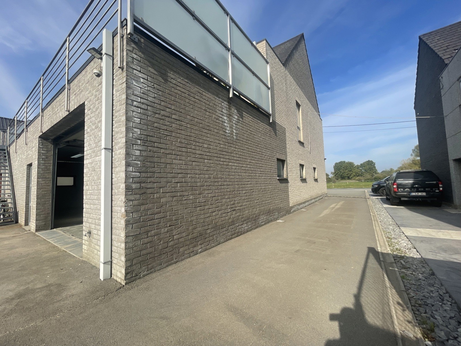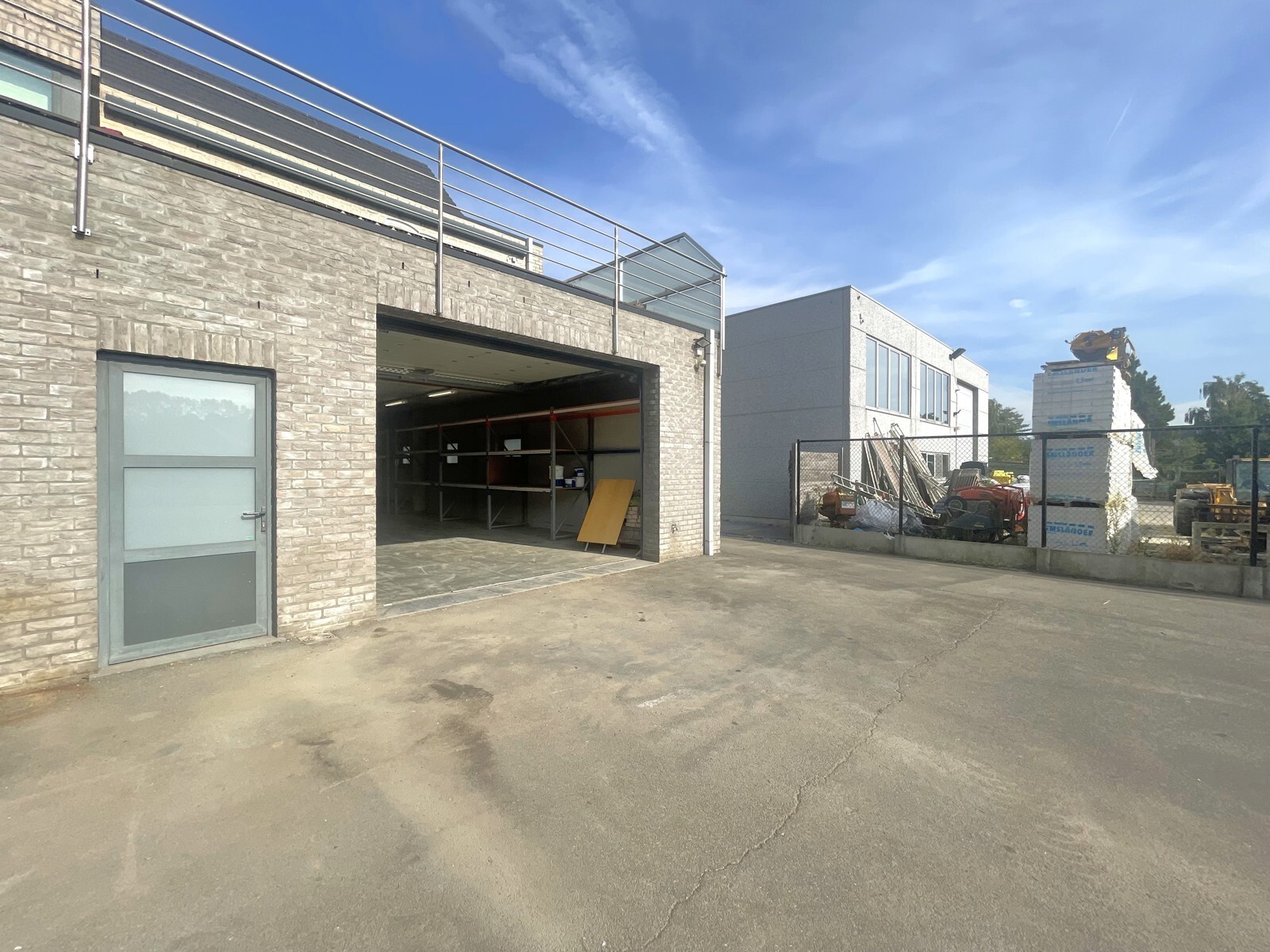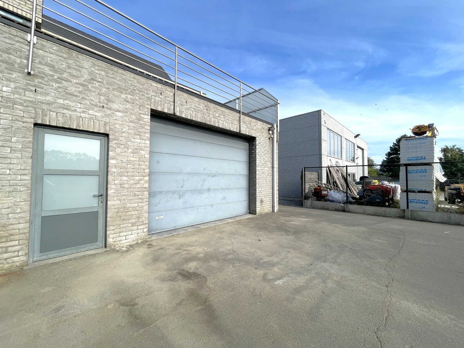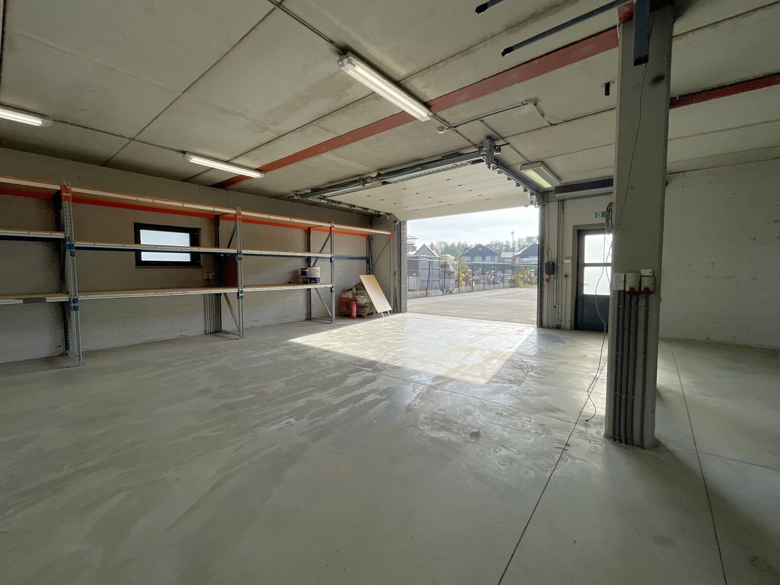 Magazijn met bureel op betonvloer 220 m². Dubbele sectionale poort (4.00m breed). Apart toilet.