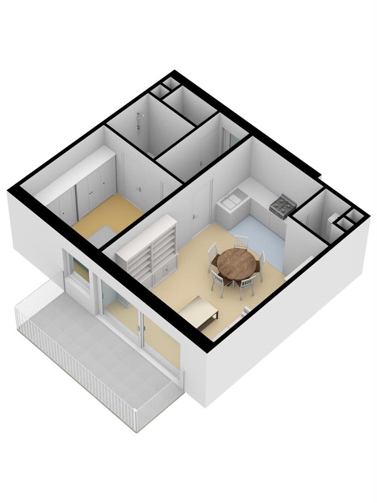 Inkomhal ca. 3m² met gastentoilet. Leefruimte ca. 21m² op parket-tegel met open keuken ca. 4m² voorzien van een keramische kookplaat, dampkap, combi-microgolfoven, vaatwasser en koelkast. Aansluitende berging. Via de leefruimte toegang tot het Zuid geörienteerd terras ca. 10m².