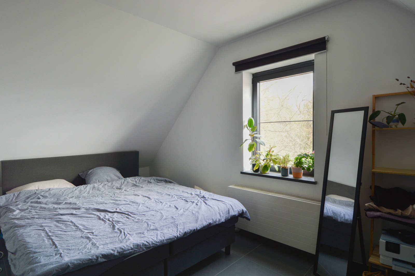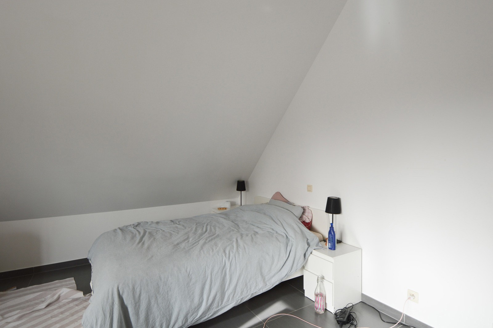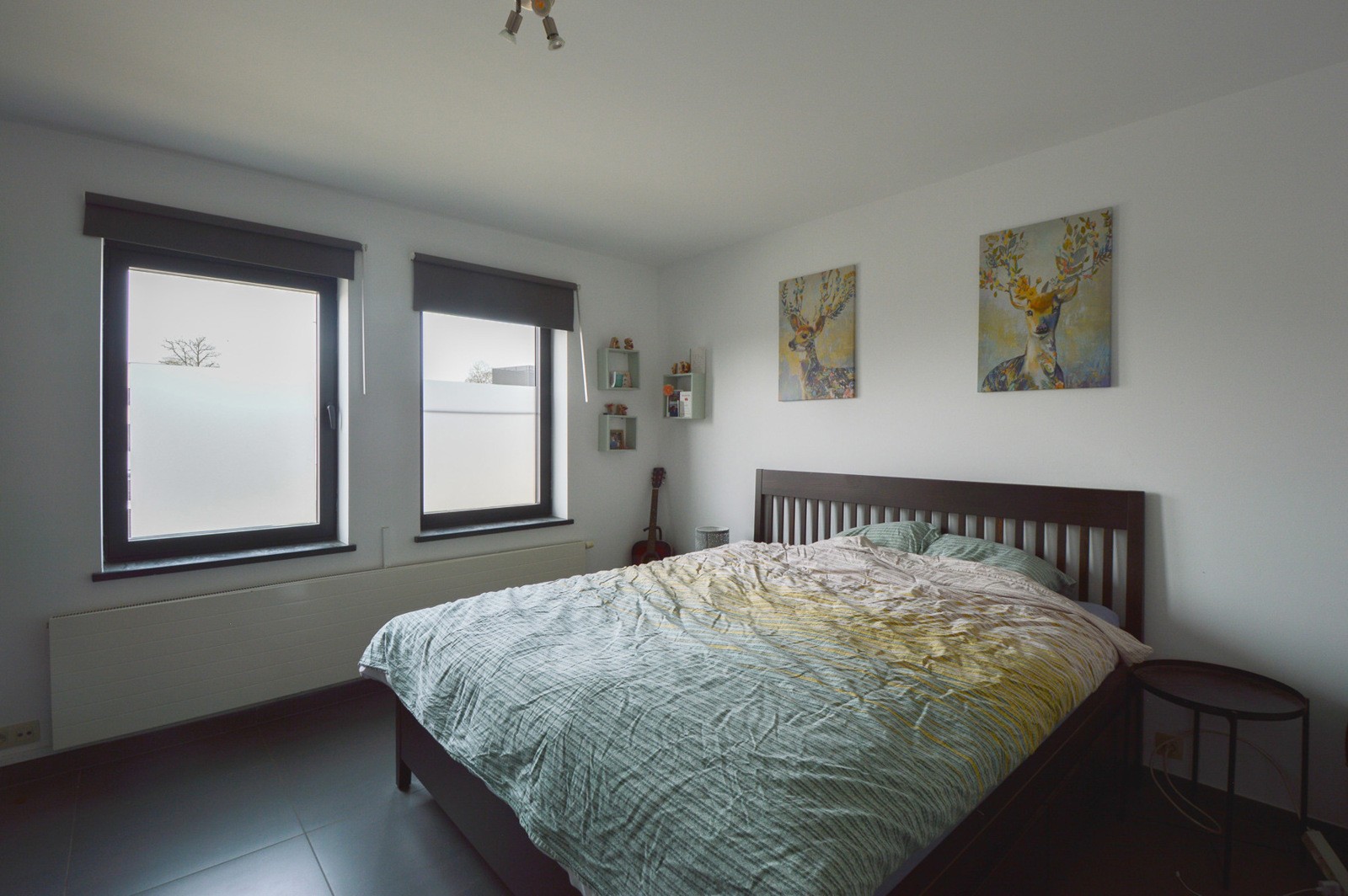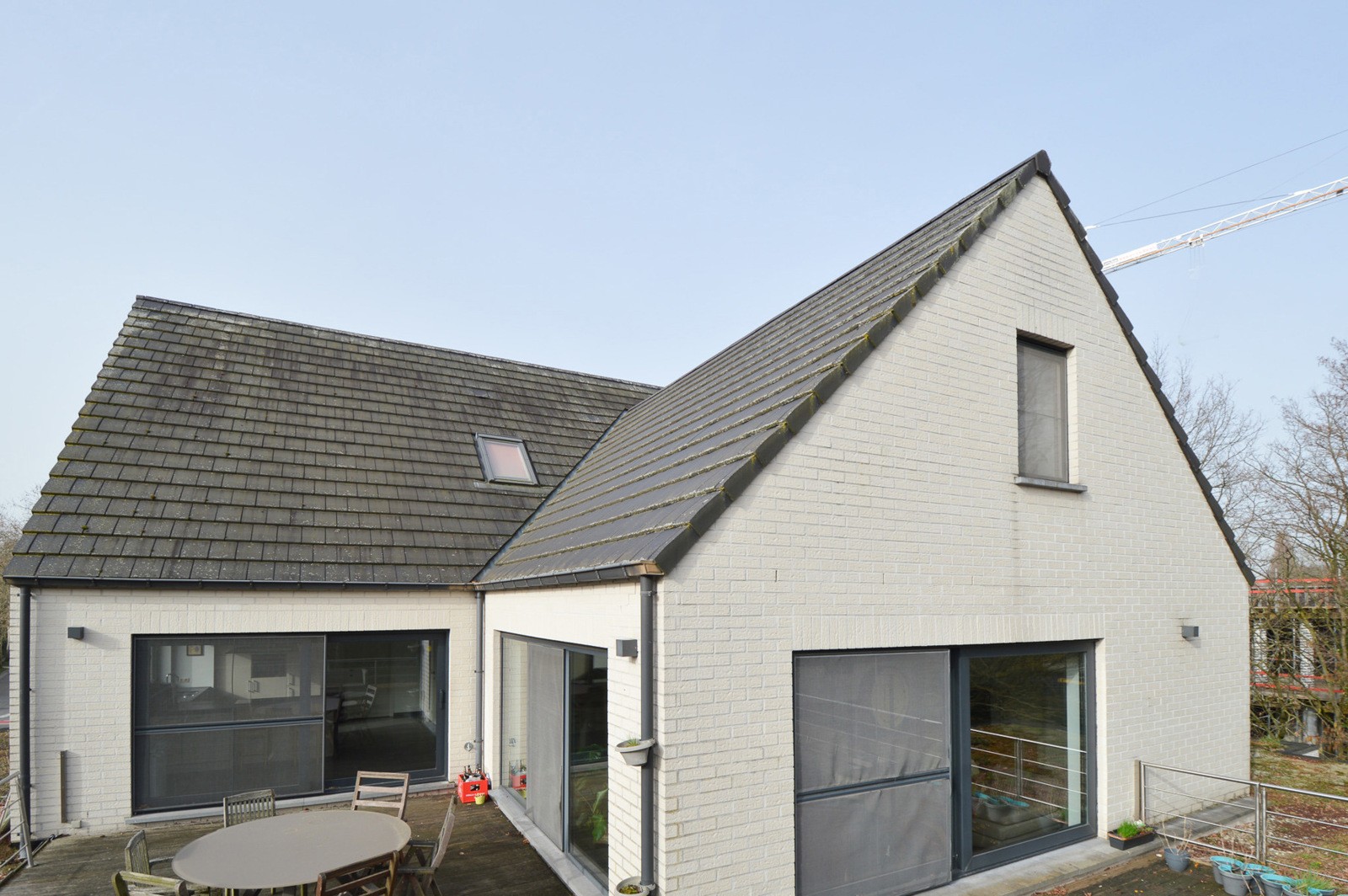 De eerste verdieping omvat een inkomhal met praktische berging en gastentoilet met handenwasser. De zeer ruime leefruimte van ca. 55 m² op tegelvloer geniet van grote raampartijen en biedt directe toegang tot het zonnige terras. Aansluitend bevindt zich de volledig geïnstalleerde open keuken van ca. 29 m², uitgerust met kwalitatieve Siemens-toestellen, waaronder een inductiekookplaat (4 pits), afwasmachine, koelkast, vriezer, combi-oven en een dubbele spoelbak. Verder is er een aansluitende wasplaats/berging van ca. 9 m² en een vestiairekast. Via de nachthal bereikt u de hoofdslaapkamer van ca. 16 m² en de eerste badkamer, uitgerust met ligbad, douche, dubbele lavabo en handdoekradiator.