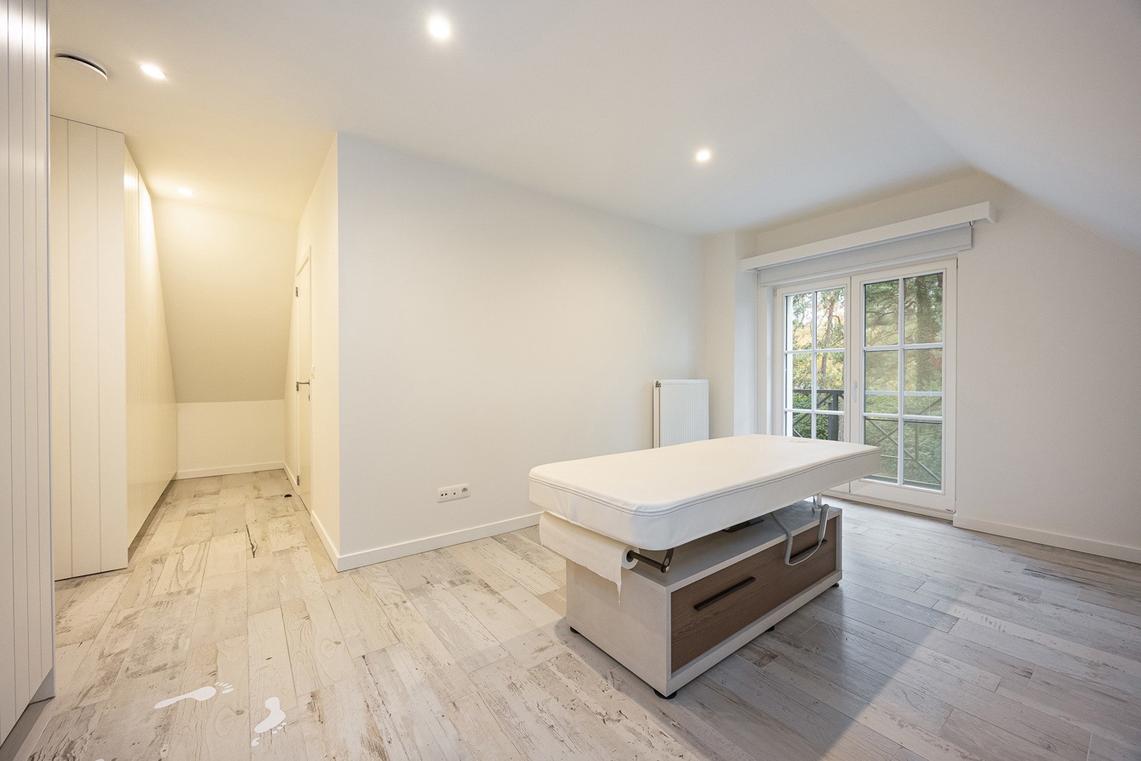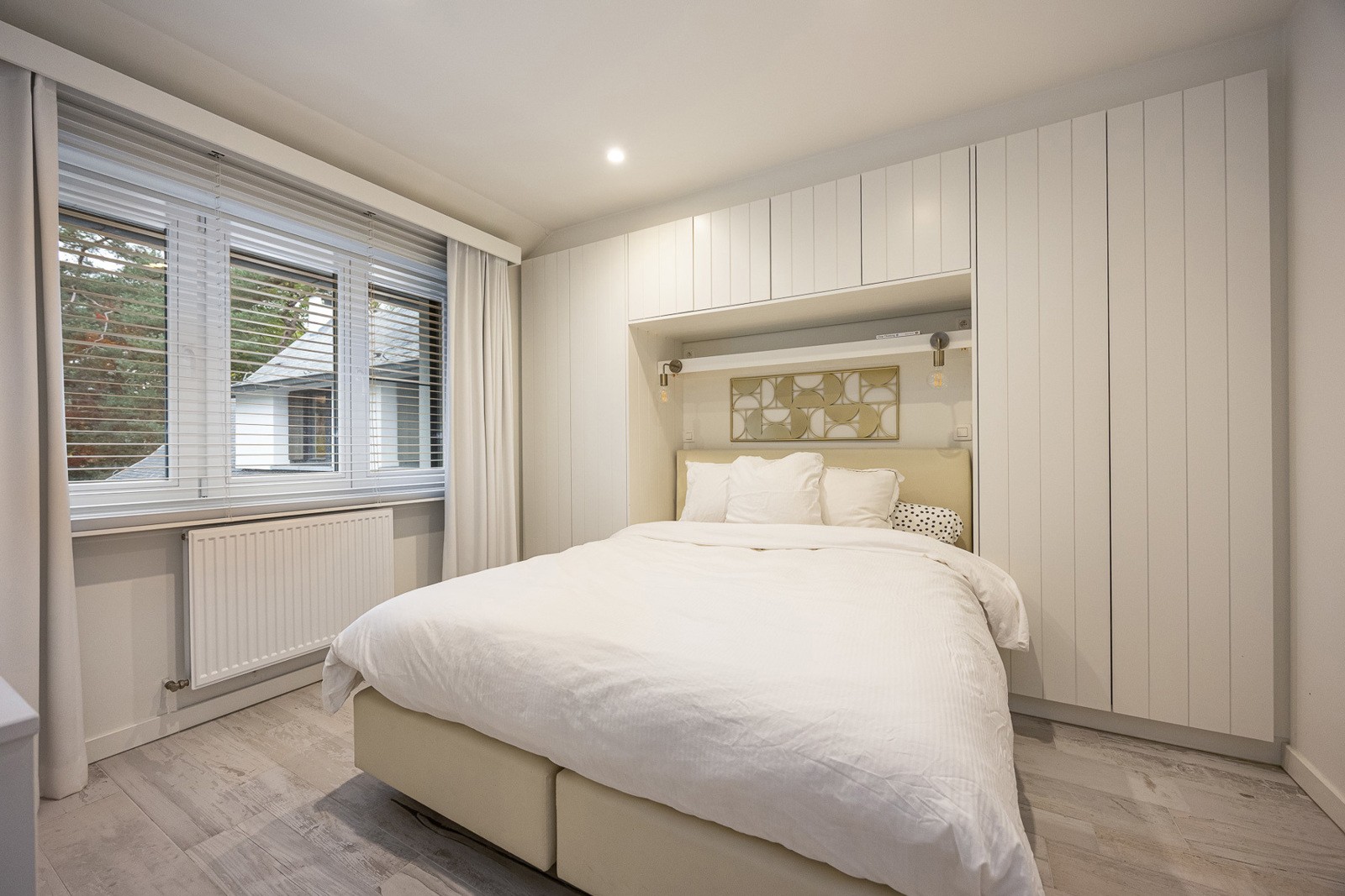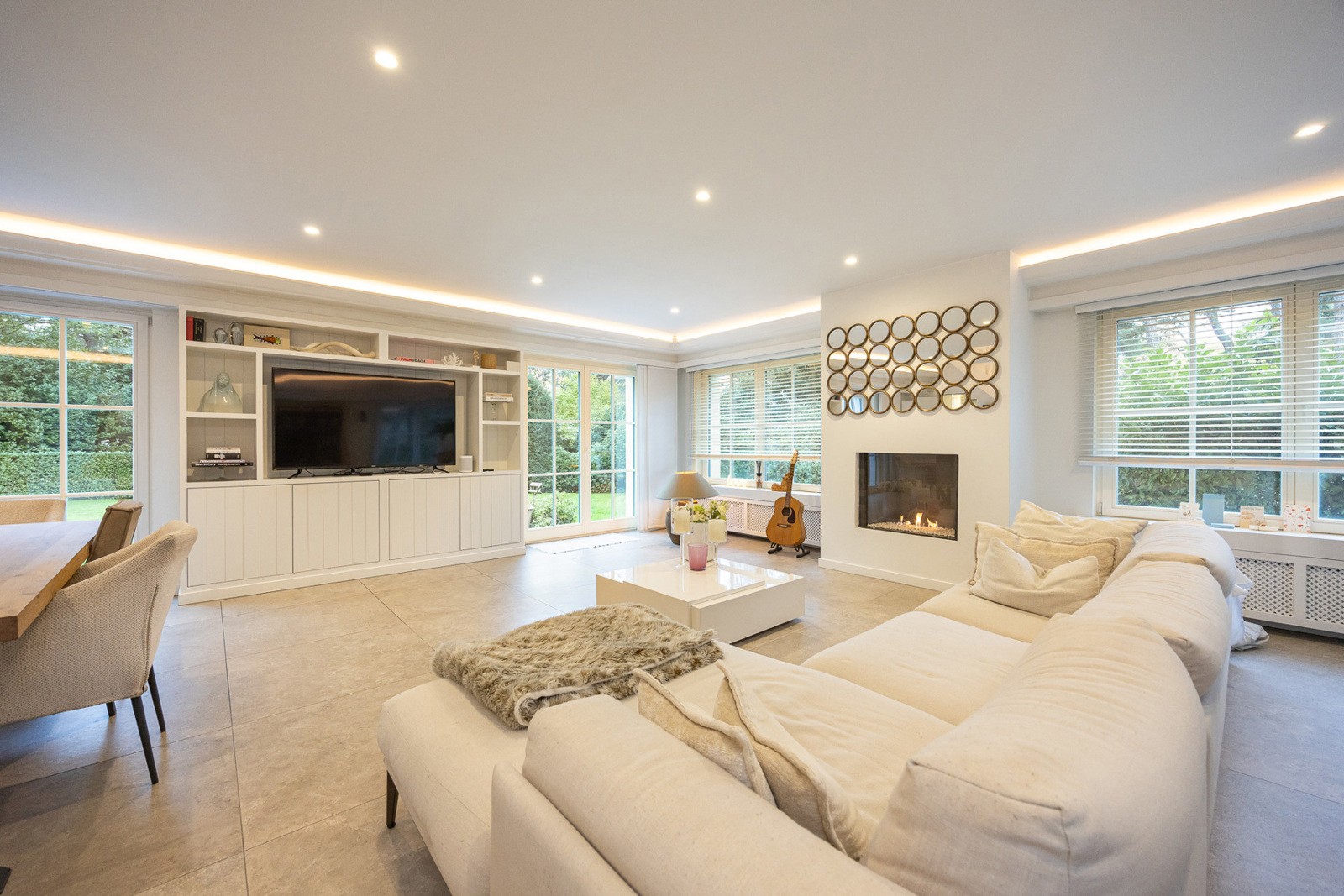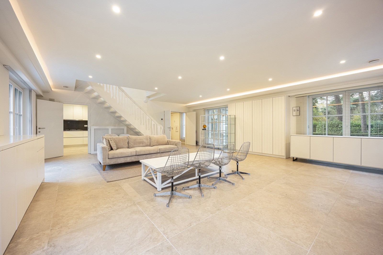 De ruime woonkamer van 63 m² in “Long Island stijl” met gashaard sluit mooi aan op de volledig uitgeruste keuken van 10 m² met granieten werkblad en Quooker kraan. Verder is er een praktische wasplaats van 6 m², een garage van maar liefst 50 m² en een gezellige tuin met terras van 45 m². De 1ste verdieping omvat een royale overloop van 16 m², een hoofdslaapkamer van 20 m² met aansluitende dressing van 6 m² en een badkamer van 10 m² met ligbad, douche, dubbel lavabomeubel en toilet. De 2de slaapkamer beschikt over ingemaakte kasten en een eigen dressing van 13 m², met daarnaast een 2de badkamer van 6 m² met bad/douchecombinatie, lavabo en toilet.