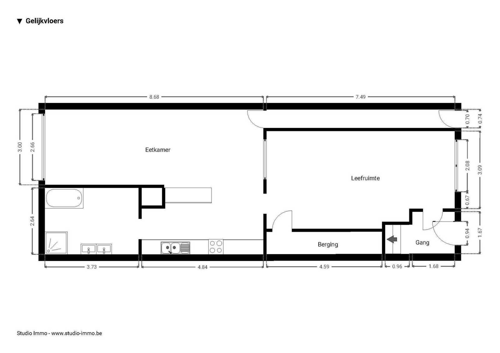 Verder beschikt het gelijkvloers over een praktische berging en een handige zij-ingang.