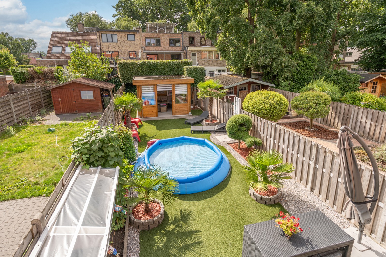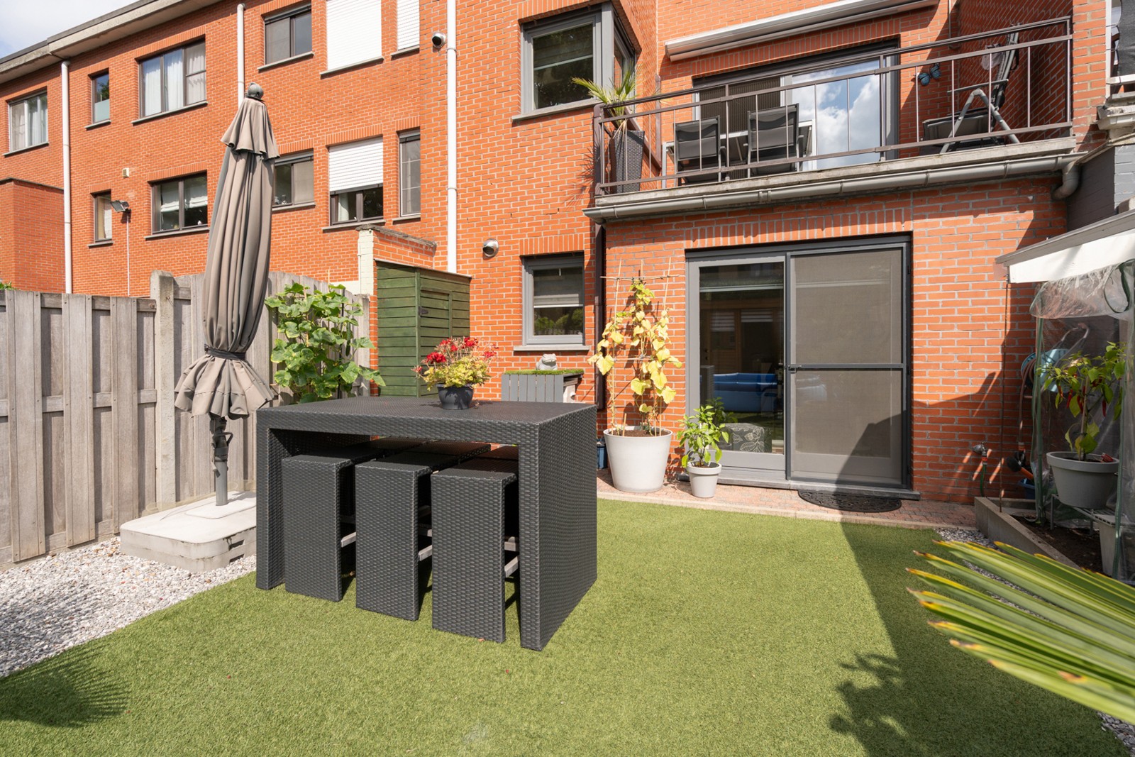 Na een intensieve dag kom je volledig tot rust in de perfect onderhouden, zongerichte tuin. De stijlvolle houten loungeruimte nodigt uit tot lange zomeravonden met vrienden of familie. Praktisch gemak is er ook: je parkeert moeiteloos twee wagens op je eigen perceel.
