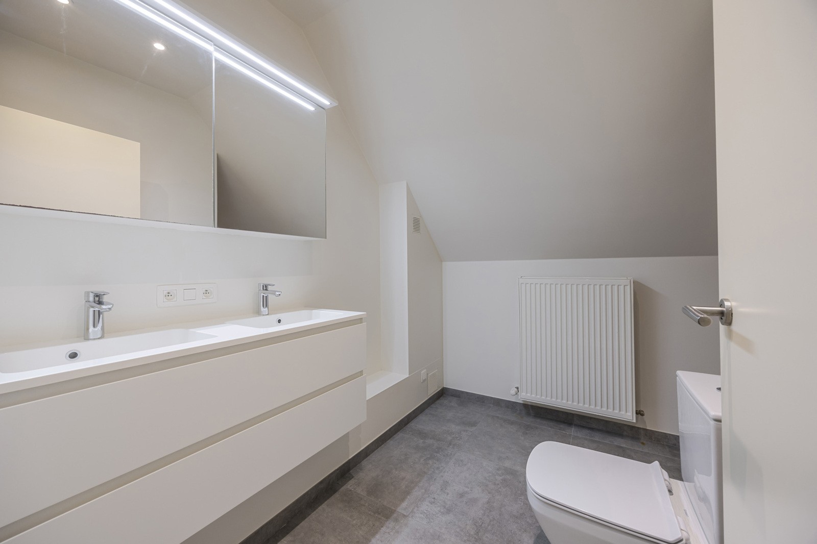 De veiligheidsdeur geeft toegang tot twee slaapkamers (17,28m² en 14,12m²). Slaapkamer 1 heeft een bijhorende dressingruimte en privatieve badkamer met ligbad, douche en dubbel meubel. Slaapkamer 2 geniet van een aansluitende douchekamer met enkel meubel.