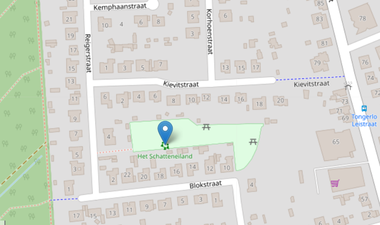 Dit gras/speelveld is toegankelijk vanuit de Blokstraat en de Reigerstraat. Het is genoemd 'Schatteneiland'