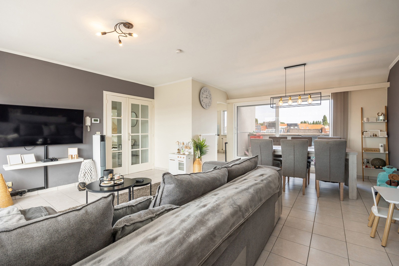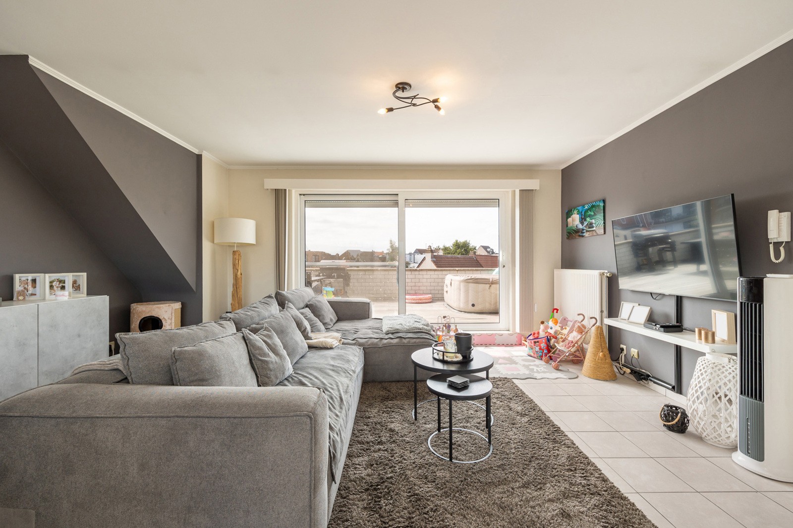 Zeer lichte living 33 m² op tegel met toegang tot 2 terrassen.