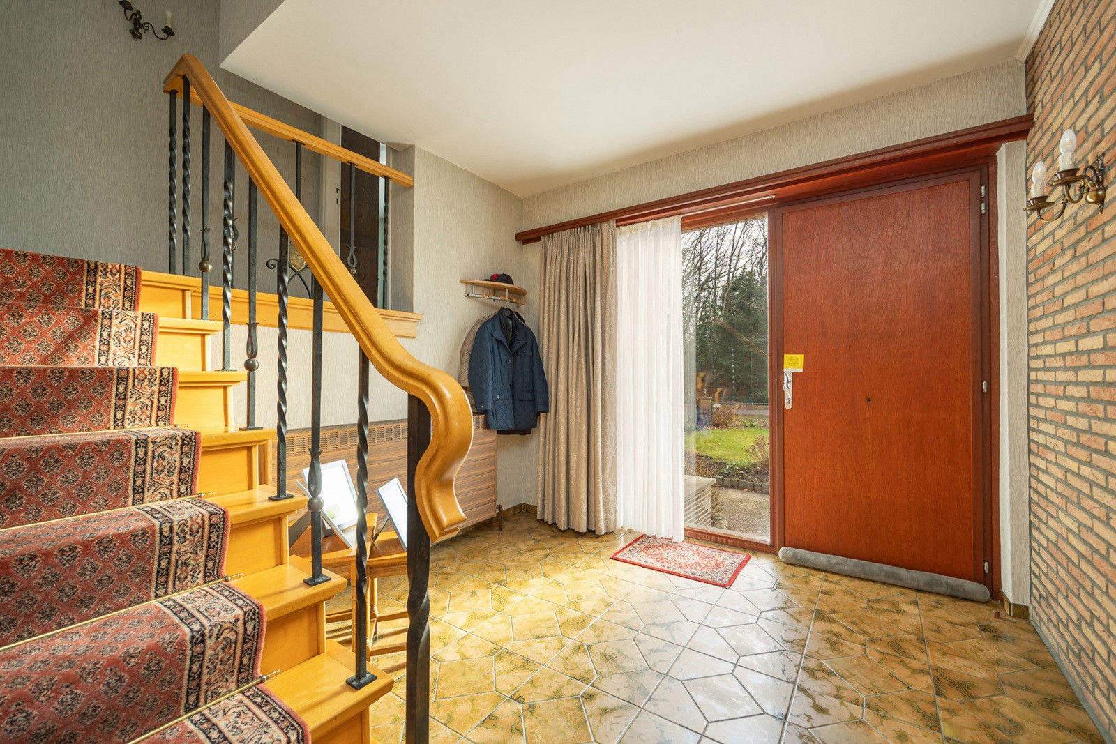 U betreedt de woning via een ruime inkomhal van 10 m² op tegel. Ook via een achteringang van 5 m² heeft u bijkomende toegang.