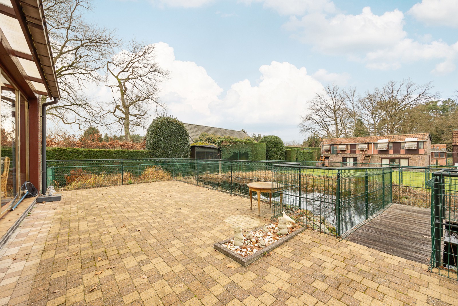 De woning beschikt over een uitzonderlijk grote tuin met vijver, ideaal om in alle rust te genieten van het buitenleven.