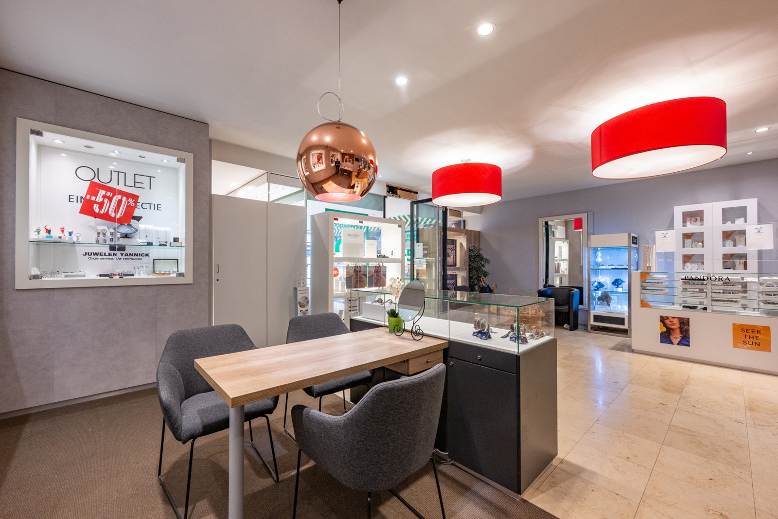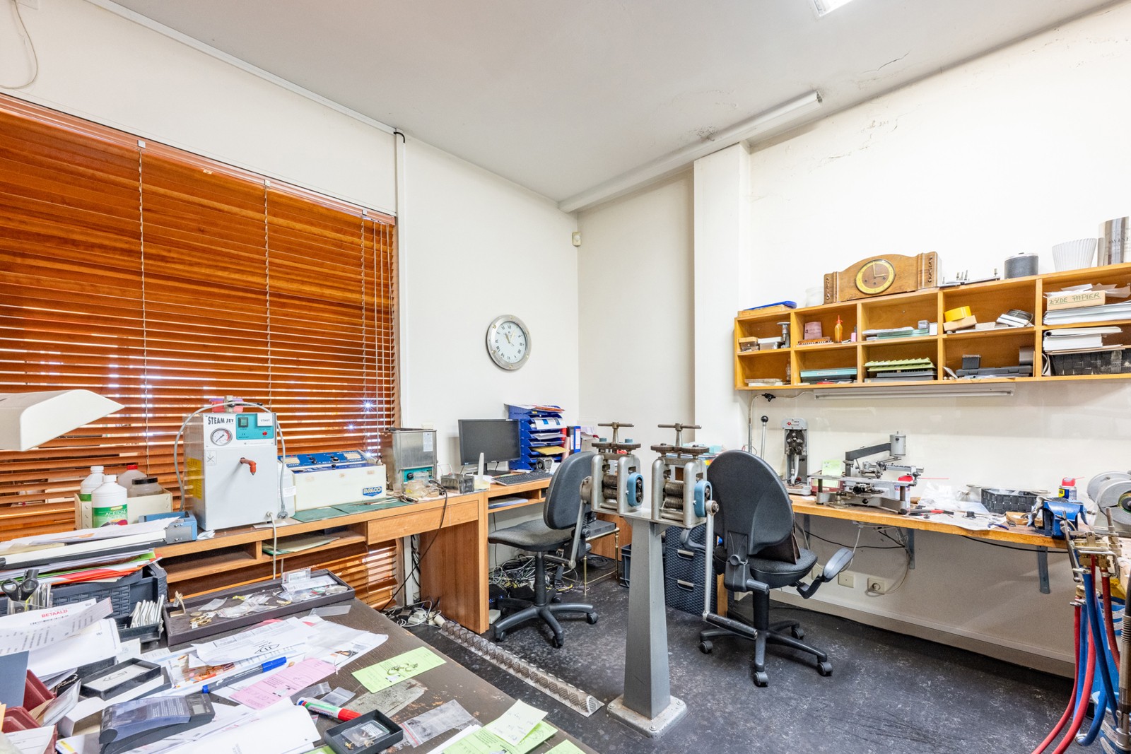 Het gelijkvloers werd jarenlang uitgebaat als juwelierszaak en is perfect onderhouden. De grote raampartijen en brede etalage zorgen voor maximale zichtbaarheid in een drukke, centrale winkelstraat.