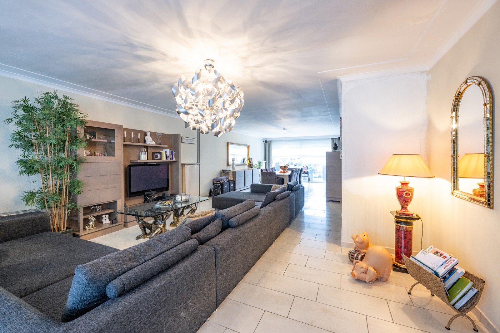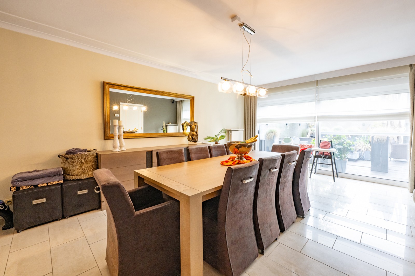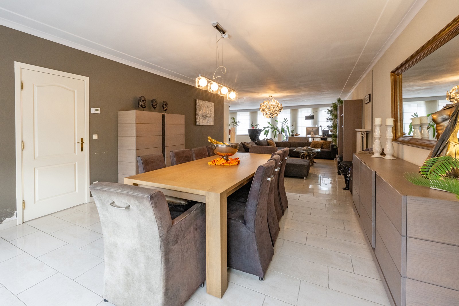 Zeer grote leefruimte met grote ramen en natuurlijke lichtinval
