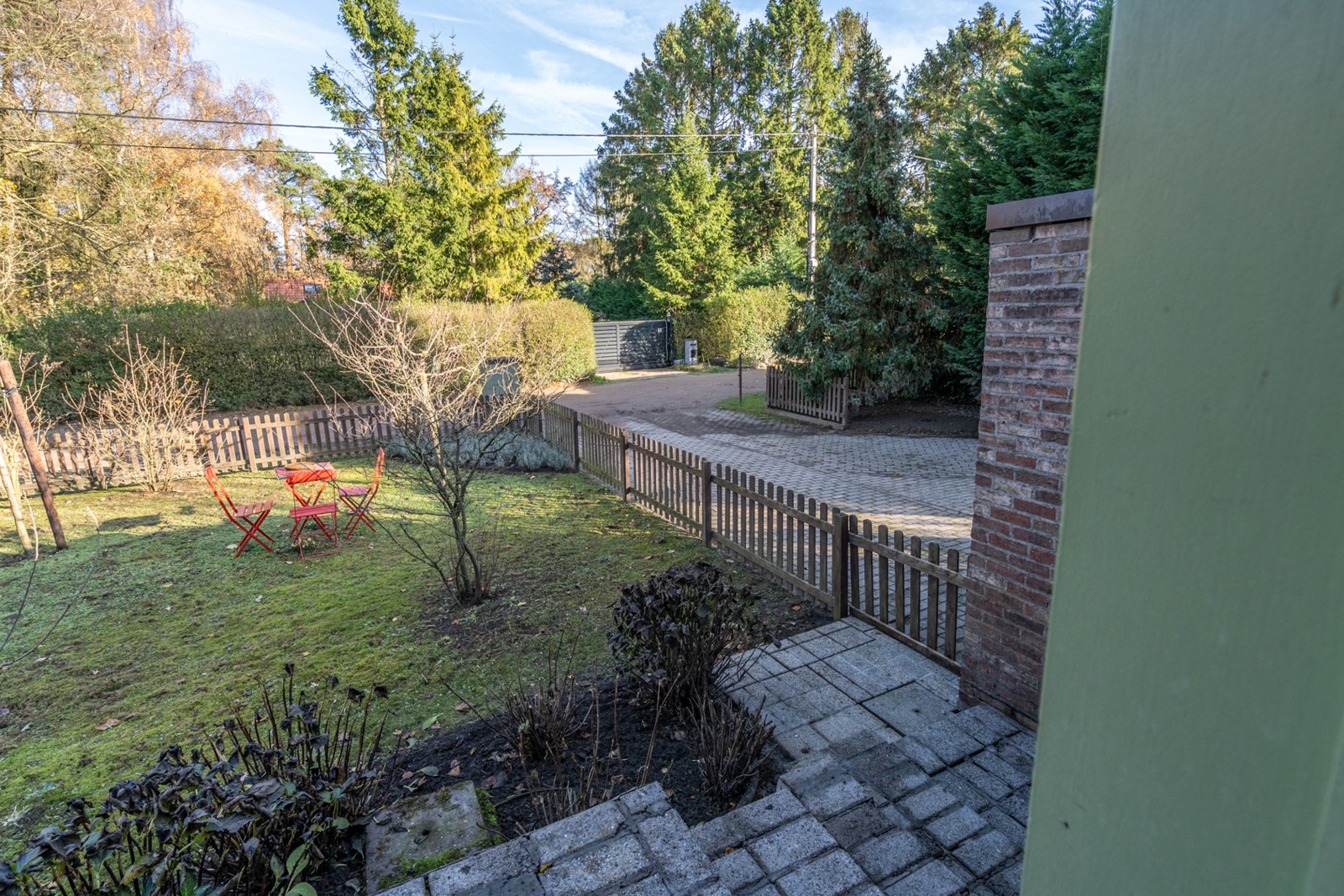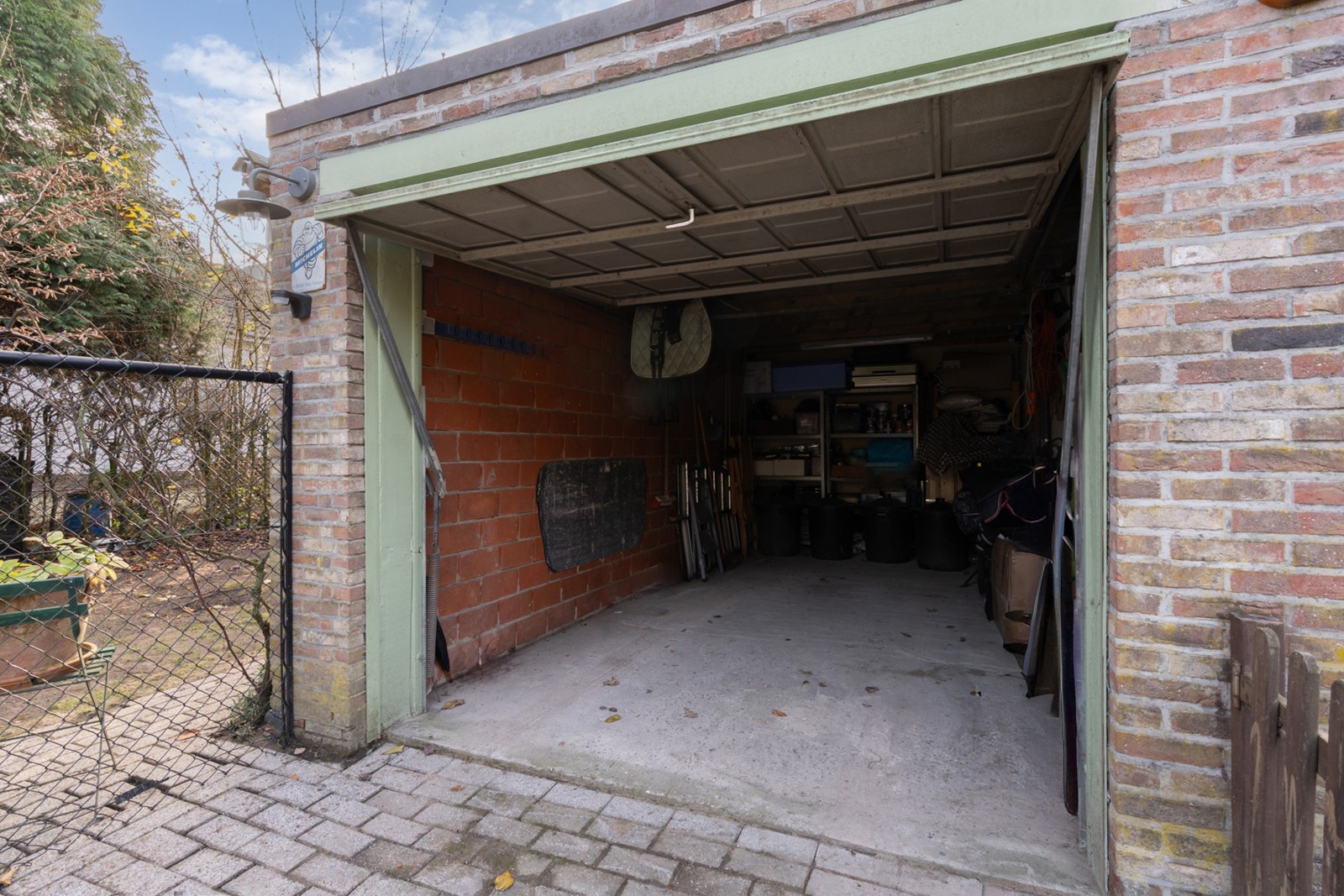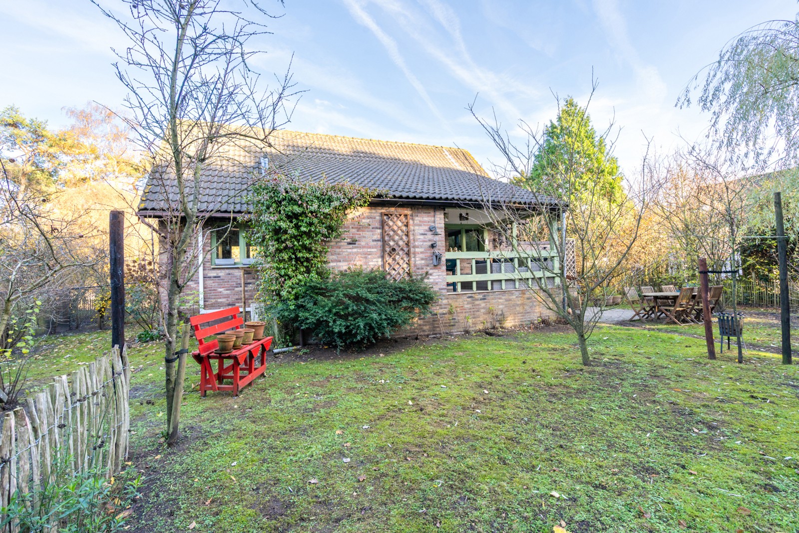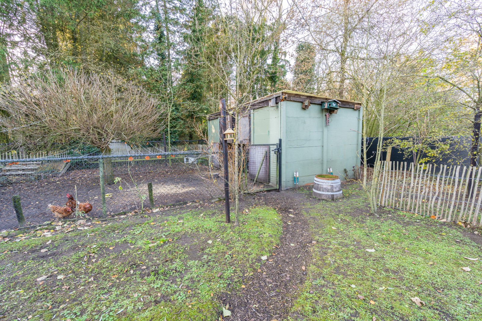 Aan de achterzijde van de woning geniet u op het verhoogde terras van circa 10m² van een prachtig uitzicht over de tuin en het omliggende groen. Wat de bijgebouwen betreft, dient de koper rekening te houden met enkele aanpassingen om de situatie in overeenstemming te brengen met de vergunning. Concreet betekent dit dat de vrijstaande schuilhut nog verwijderd moet worden en dat de huidige garage van circa 15m² omgevormd moet worden naar een compactere berging van circa 7m². Achter deze ruimte bevindt zich nog een handige wasplaats van circa 5m². De verplichte grondafstand is bij deze woning al geraeliseerd dus ook daar geen zorgen meer. Het oppervlakte voldoet aan de voorwaarden van het PRUP.