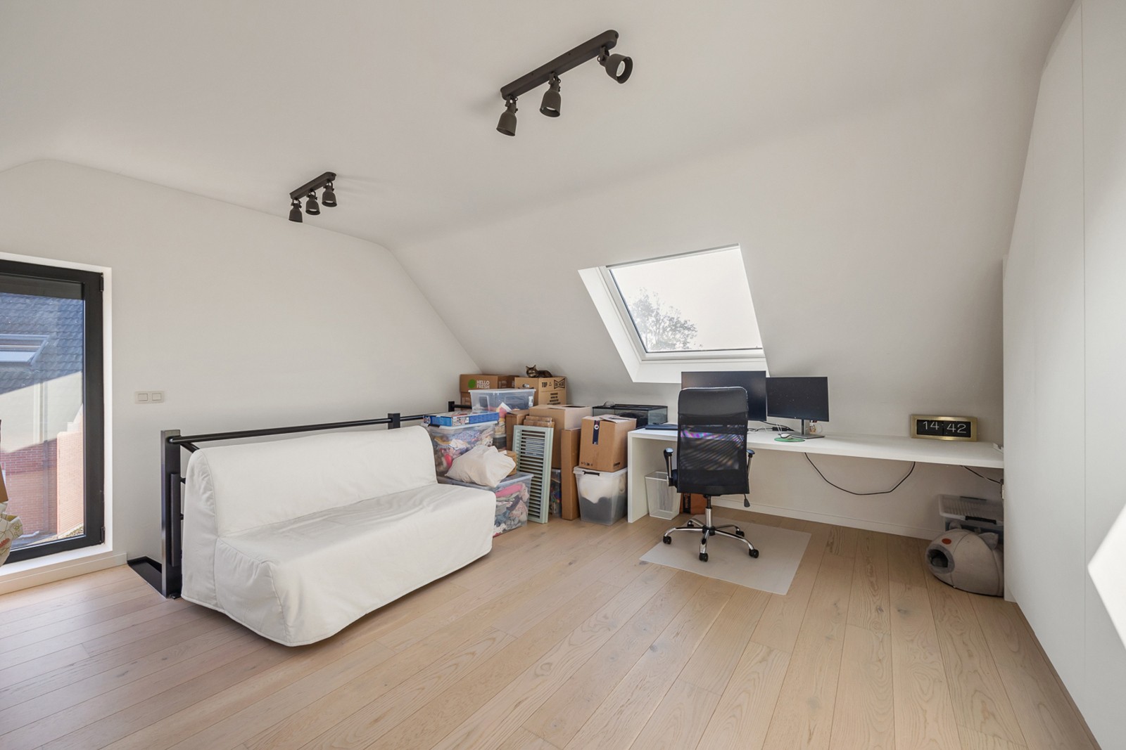 Ruime kamer van ca. 27 m², momenteel ingericht als bureauruimte