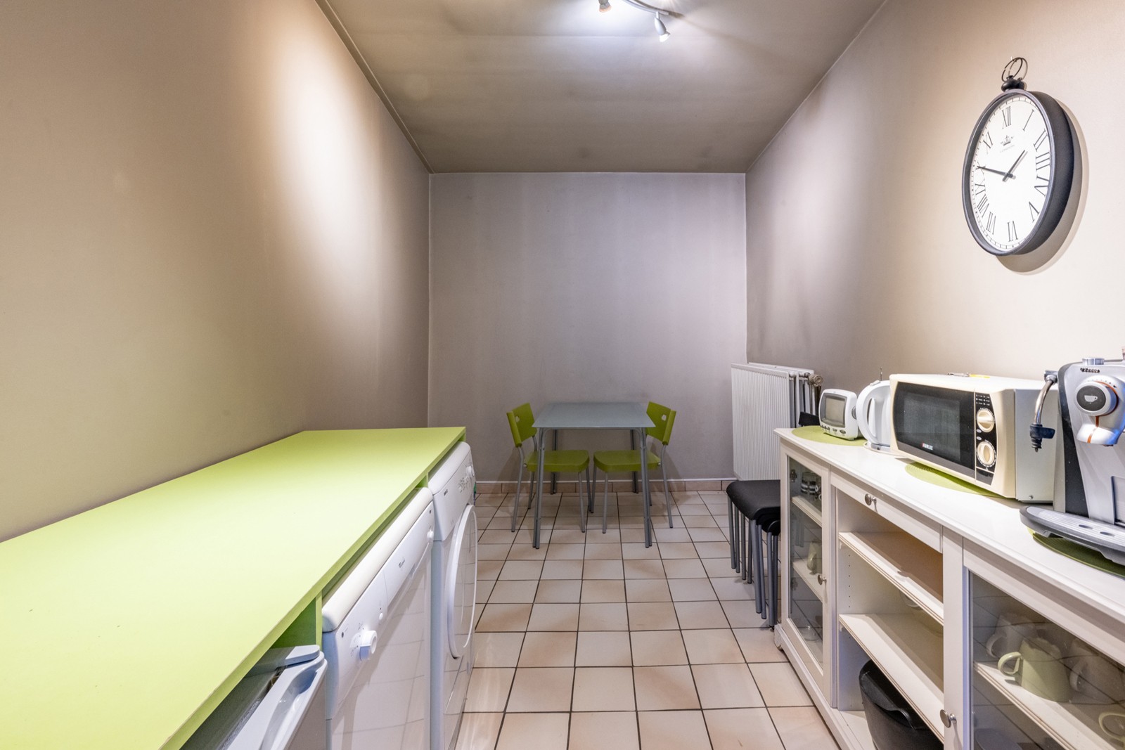 - Achteraan een kamer met aansluiting voor wasmachines en droogkasten