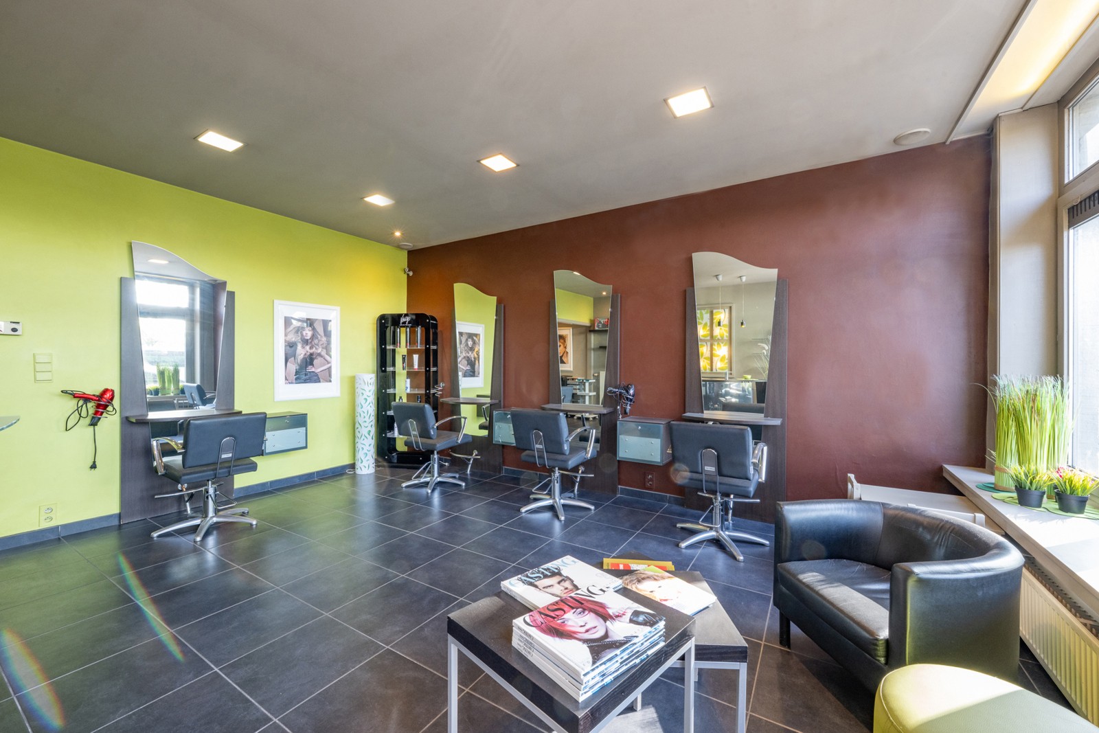 Het handelspand is momenteel ingericht als kapsalon en verkeert in uitstekende staat. Bovendien beschikt het over een aparte ruimte die momenteel dienstdoet als zonnebankruimte, wat extra commerciële mogelijkheden biedt.