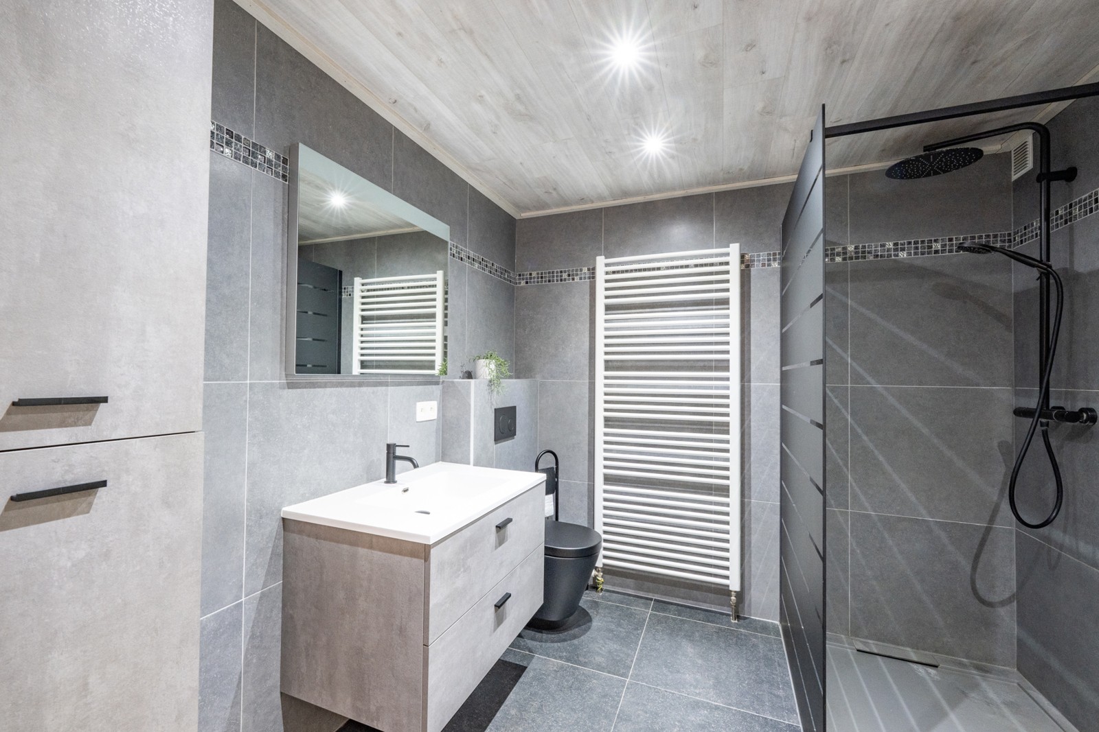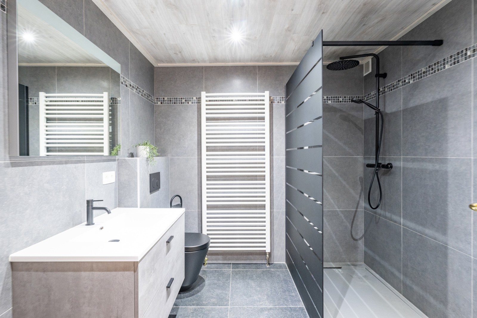 Vernieuwde badkamer met inloopdouche, lavabo met meubel en tweede toilet