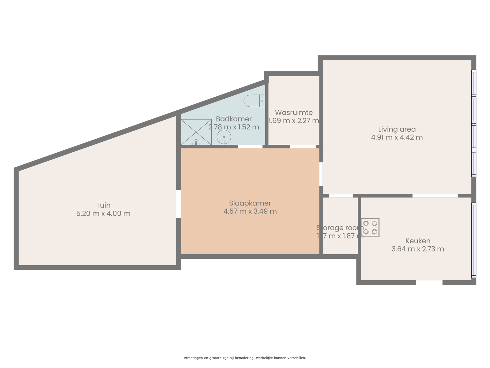 Naast de leefruimte treffen we nog een ruime bergruimte.