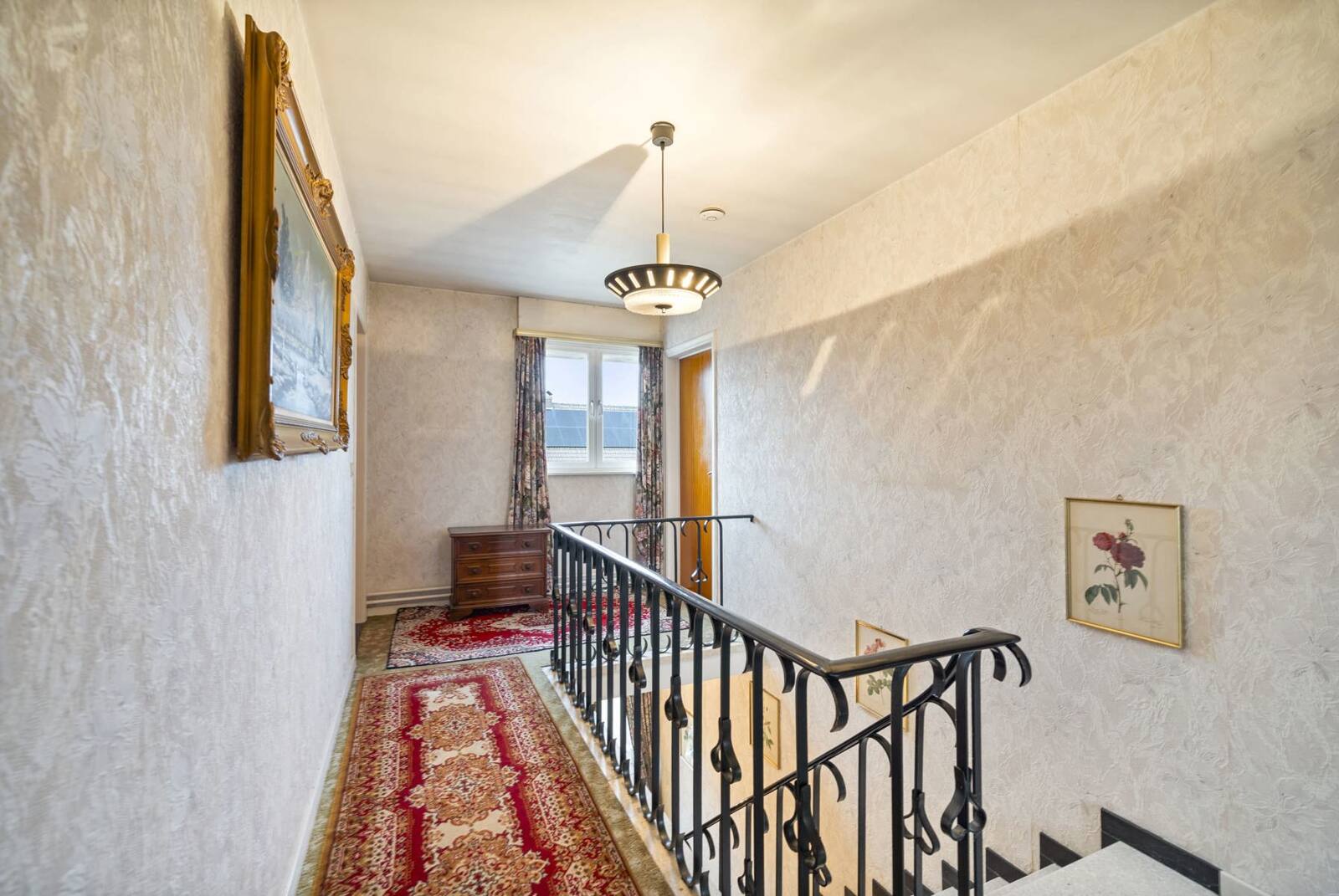 Via de charmante trap komen we in de gang die leidt naar de 4 slaapkamers (17,67m², 11,18m², 11m² en 14,67m²).