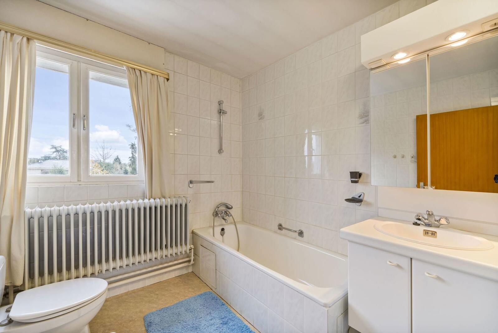 Op de eerste verdieping is er ook een badkamer (5,64m²) met ligbad en toilet te vinden.