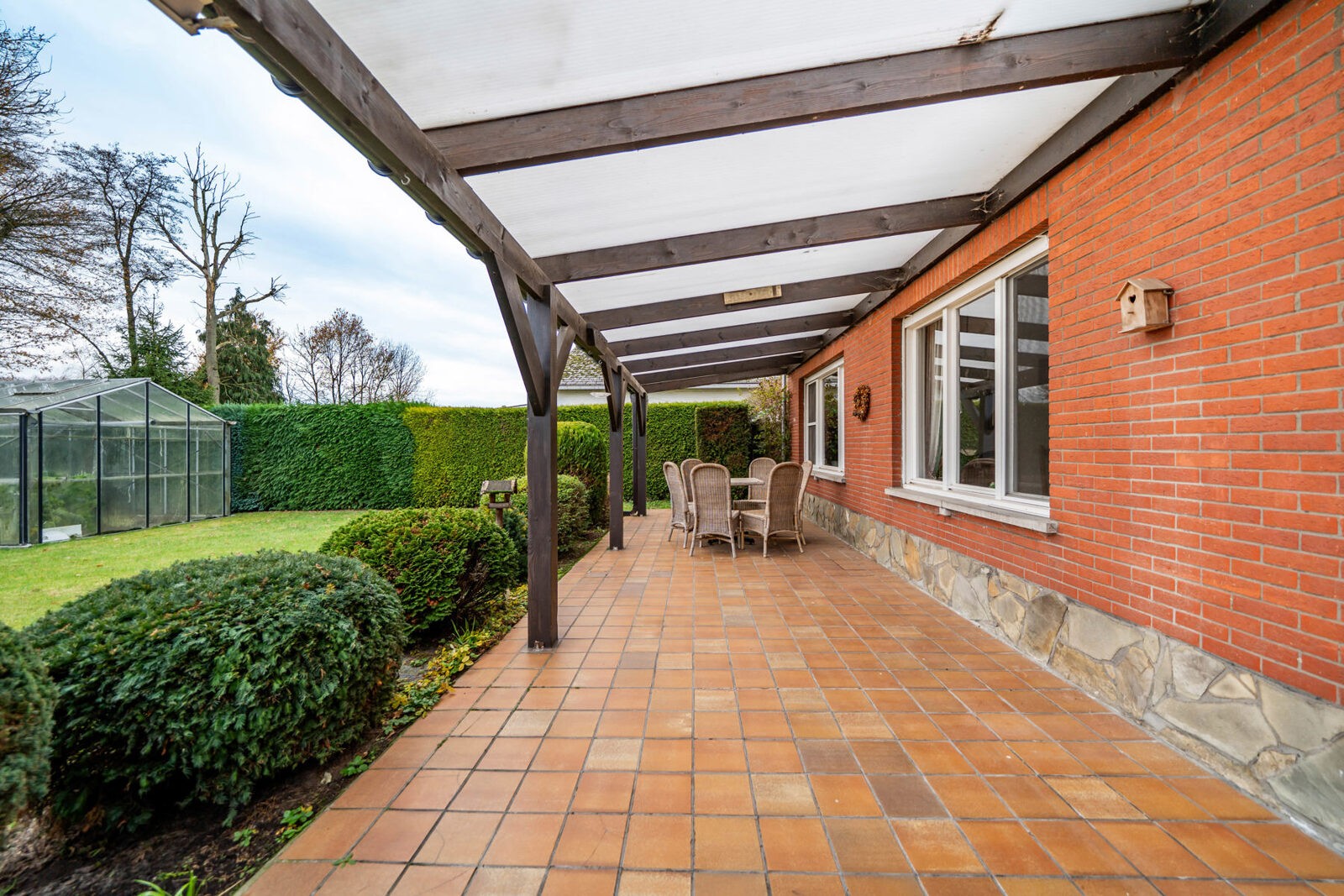 Via de keuken betreden we het terras (26m²). De ruime tuin is zuidgericht en onderhoudsvriendelijk aangelegd.