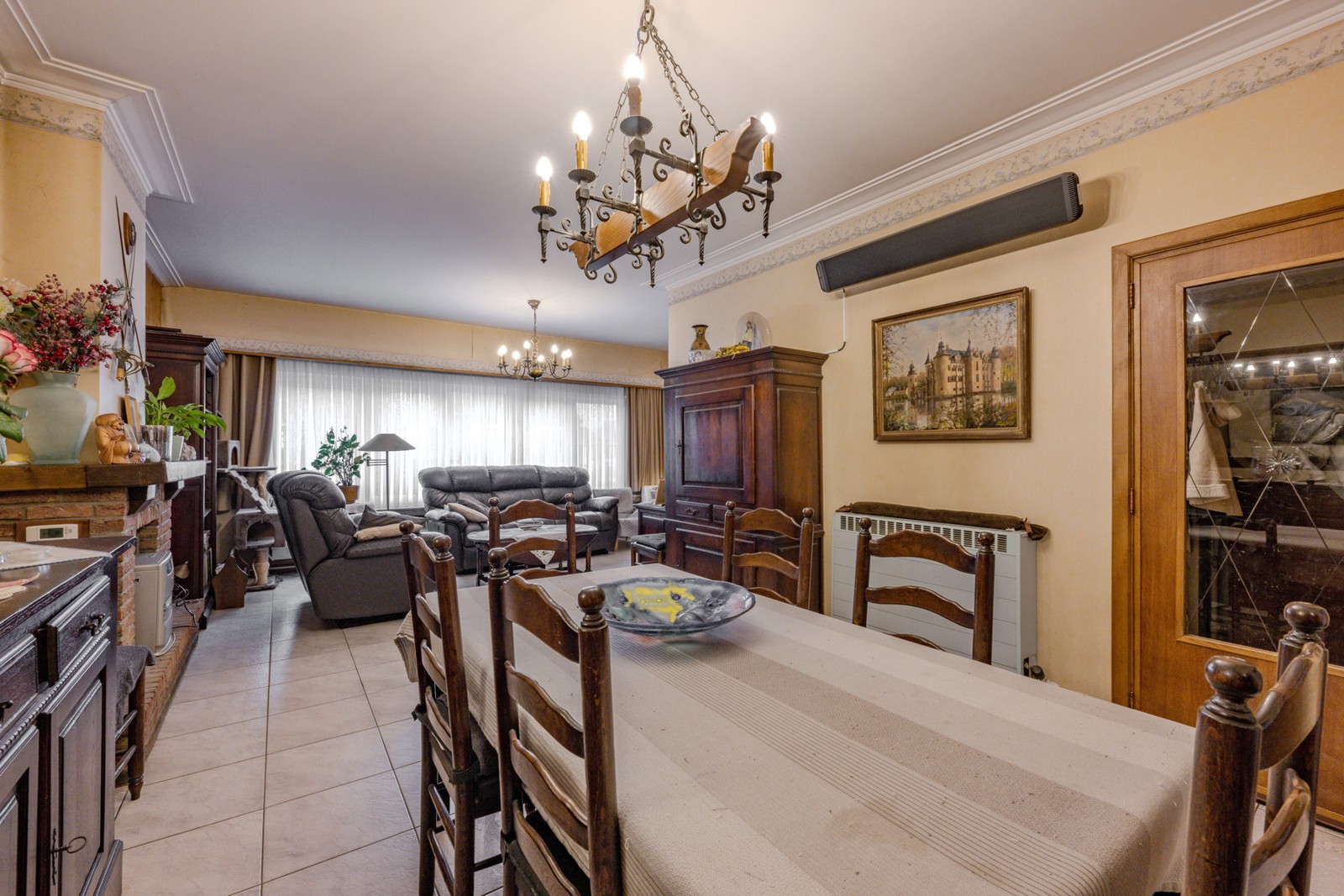 Aan de voorzijde van de woning de living (38 m²) in L-vorm.