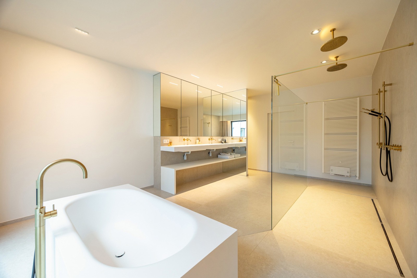 Het mastergedeelte van 100 m² met hoofdslaapkamer van 23 m² en een royale dressing van 27 m² vormen samen een ware privésuite. De aangrenzende hoofdbadkamer van 25 m² is stijlvol afgewerkt en beschikt over een ligbad, dubbele douche met “Hotbath” kraanwerk, spiegelkasten en een toilet, wat resulteert in een comfortabel en verfijnd hotelgevoel.