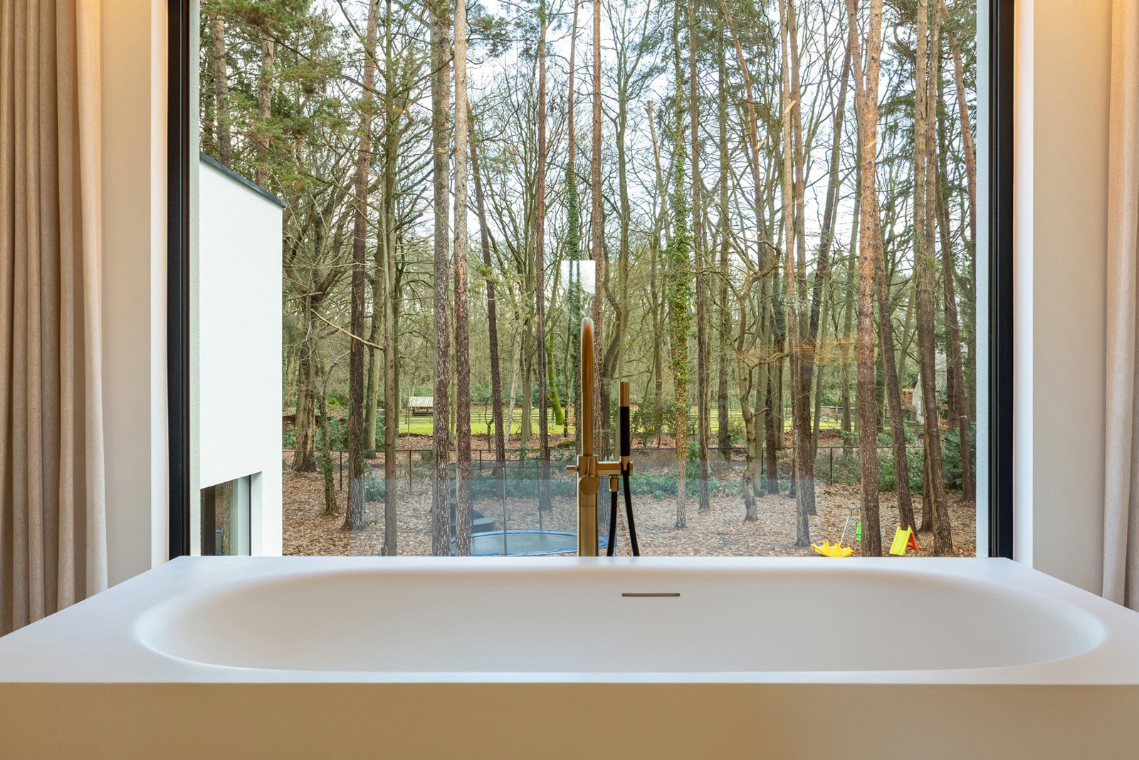 Verder beschikt het gelijkvloers over een home office van 10 m² met ingemaakte kasten, ideaal als thuiswerkplek. Daarnaast is er nog een van speelkamer van 20 m², die eveneens kan dienst doen als bureauruimte.