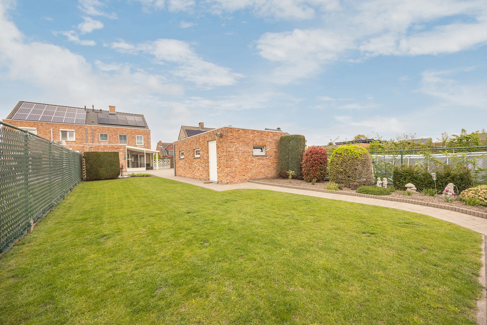 Achter de woning bevindt zich een vrijstaande garage.