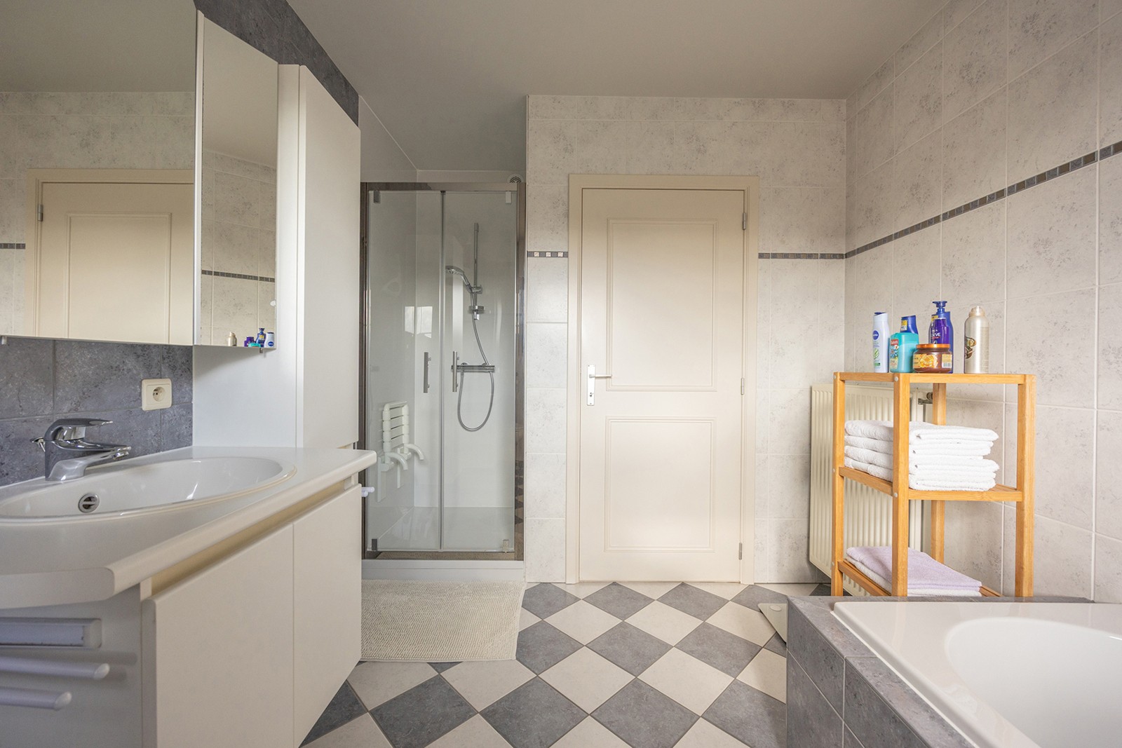 Daarnaast is er een wasplaats en een comfortabele badkamer uitgerust met een ligbad, douche (recent vernieuwd), lavabo en toilet.