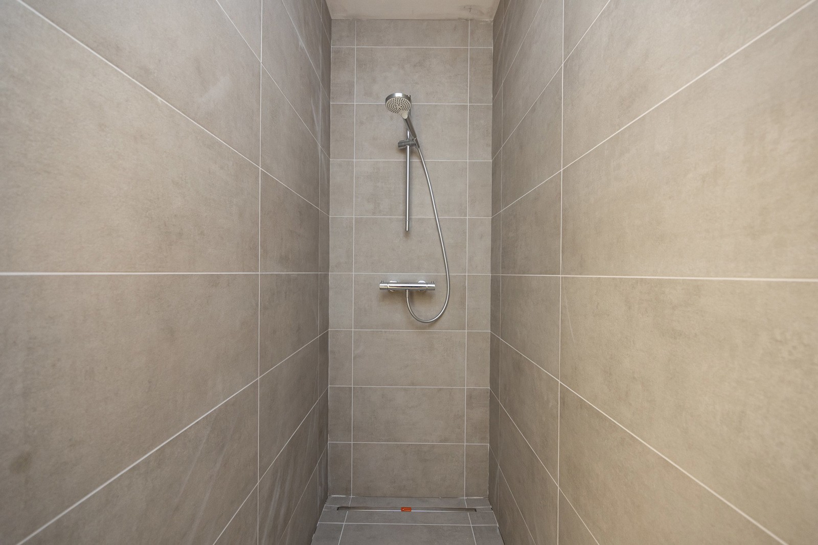 Badkamer voorzien van inloopdouche en dubbel badkamermeubel.