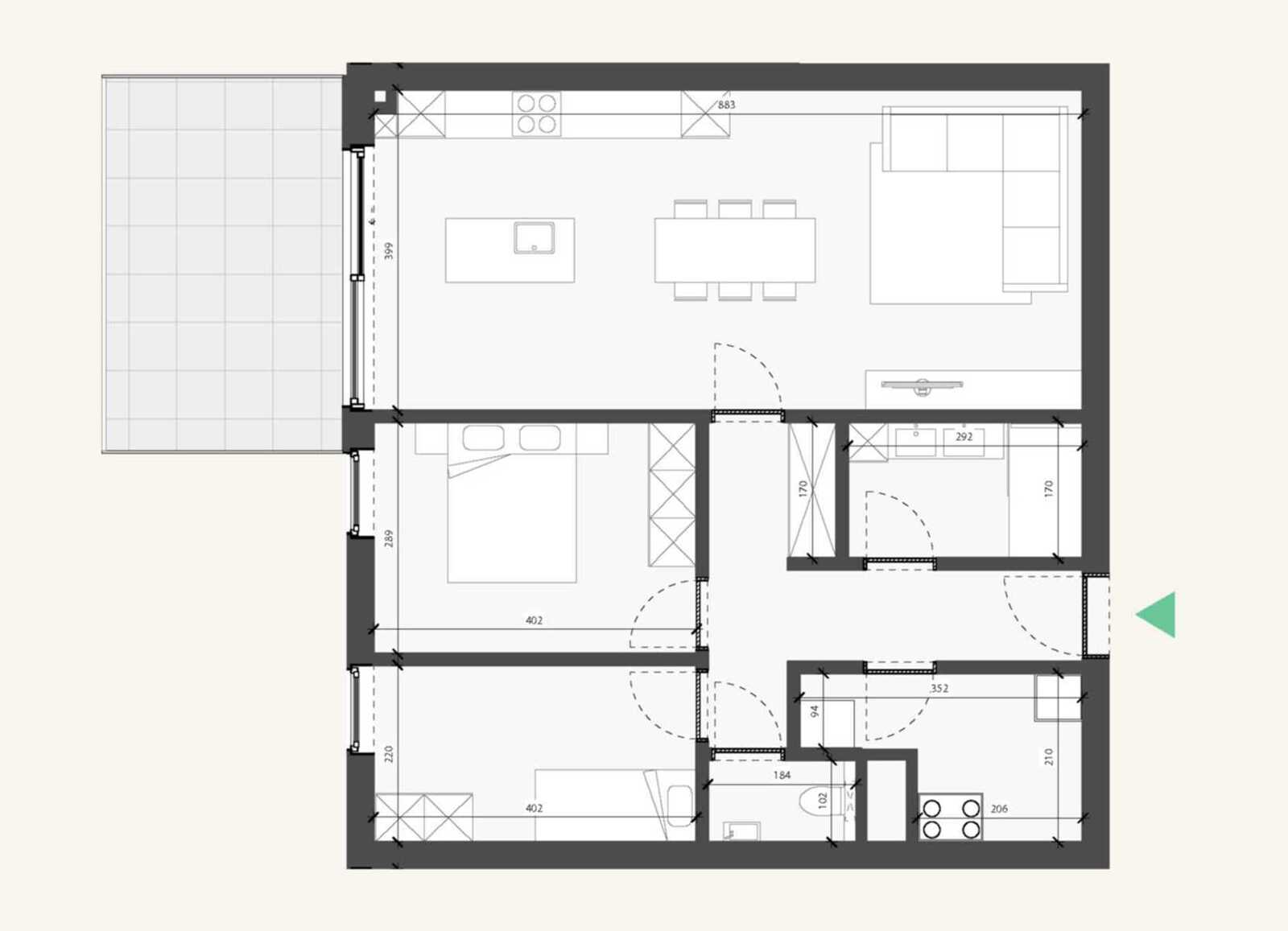 Dit gelijkvloers appartement beschikt over een lichtrijke leefruimte met open keuken en toegang tot het ruime terras. Verder telt dit appartement 2 slaapkamers, een badkamer, apart toilet en berging.