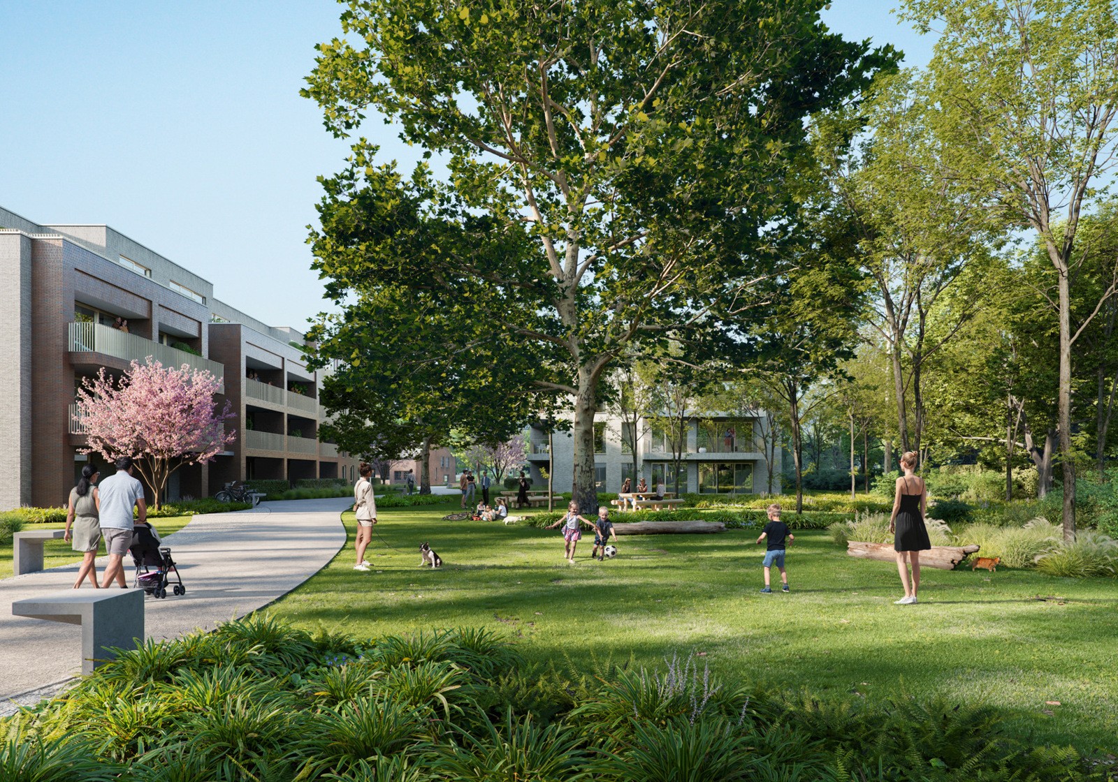 Gelijkvloers nieuwbouwappartement met 3 slaapkamers in groene omgeving.